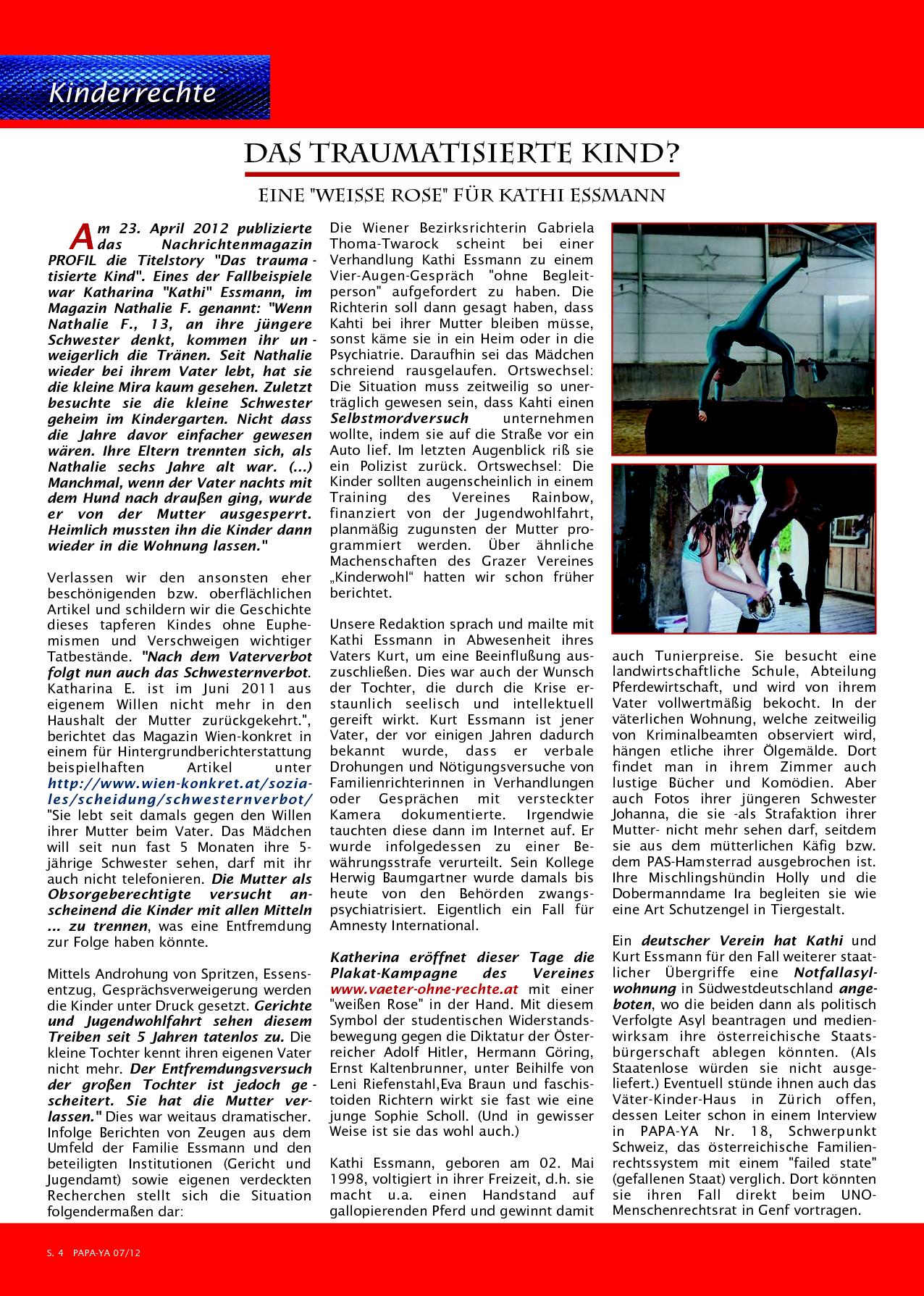 DAS TRAUMATISIERTE KIND Exklusivinterview mit Katharina "Kathi" Essmann - "Ich lasse mich nicht unterdrücken!" [Magazin PAPA-YA - 07/12]