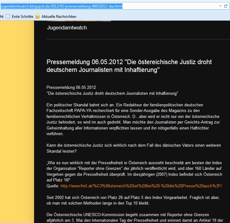 Pressemeldung: Die österreichische Justiz droht deutschem Journalisten mit Inhaftierung