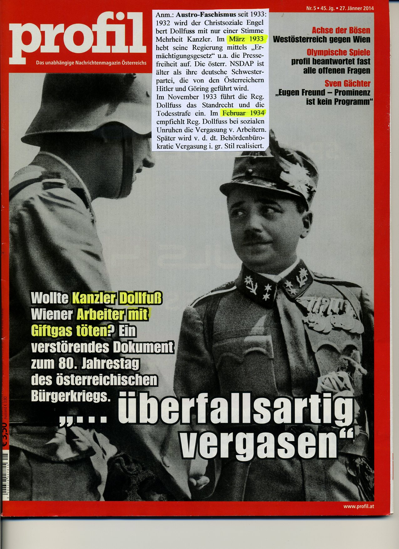 Austro-Faschismus wollte Bürger vergasen Wollte Kanzler Dollfuß Arbeiter mit Giftgas töten? Ein verstörendes Dokument zum 80. Jahrestag des österreichischen Bürgerkriegs [Quelle: Profil, 27.Jänner 2014]