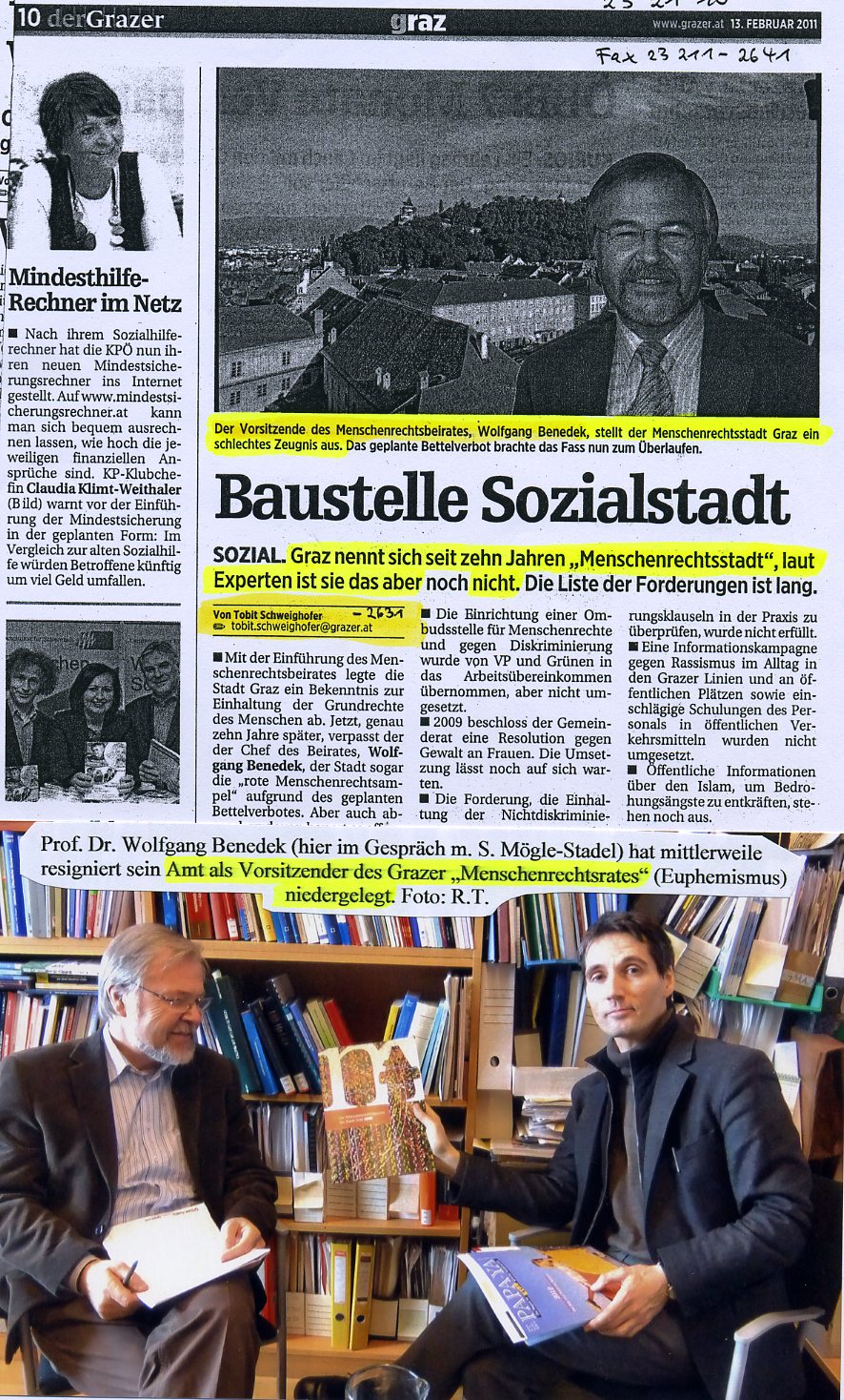 | Stadt Graz kritisiert Graz nennt sich seit 10 Jahren "Menschenrechtsstadt", laut Experten ist sie das aber nicht! [Quelle: Grazer, 13.Februar 2011]