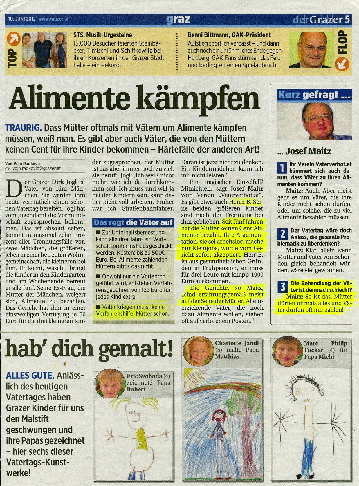 Um Alimente kämpfen Es gibt Väter, die von Mütter keinen Cent für ihre Kinder bekommen - Härtefälle der anderen Art!!! [Quelle: derGrazer, 10.Juni 2012]