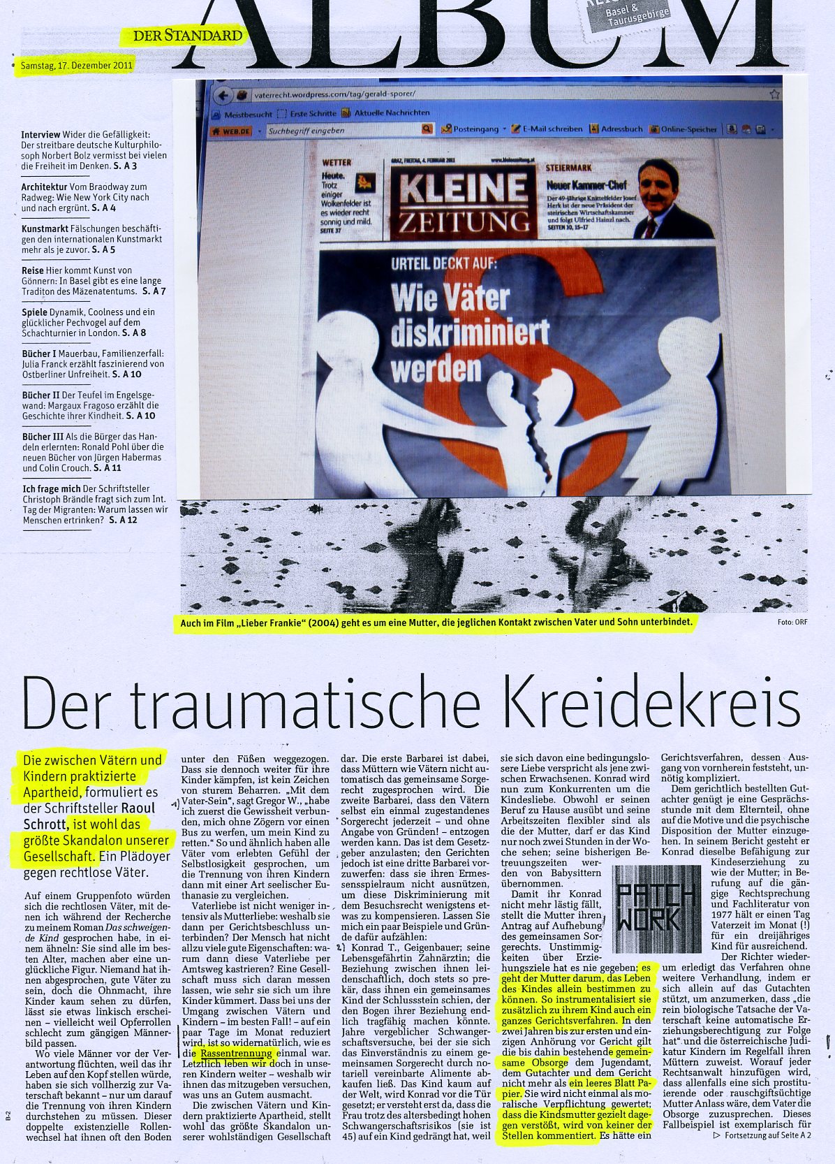 Apartheitsstaat Österreich Die zwischen Vätern und Kindern praktizierte Apartheit ist wohl das größte Skandalon unserer Gesellschaft [Quelle: STANDARD 17.12.2011]