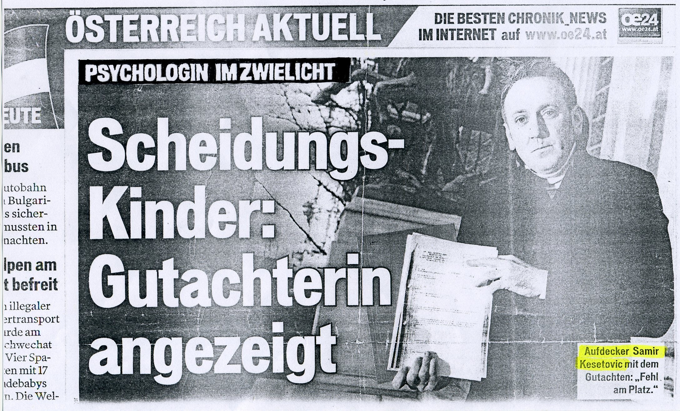 ![]() Enthüllungen über psychisch kranke Jugendamts- und Gerichts-Gutachterin durch freien PAPA-YA-Mitarbeiter und Menschenrechts-Kollegen von Stephan Mögle-Stadel, den Arbeiterkammerrat Samir Kesetovic. Dieser nahm im September 2012 auch an der Demo vor dem Bezirksgericht Graz-Ost teil. Im Oktober 2012 versuchte ein Bezirksgericht ihn zu entmündigen / besachwaltern, eine leider nicht unübliche Vorgehensart gegen Kritiker durch die österr. Judikatur. Der Versuch scheiterte an der Solidarität seines Netzwerkes und der Medienberichterstattung.