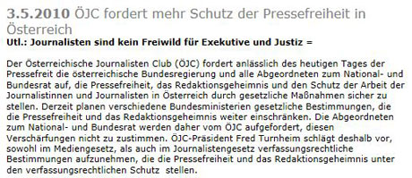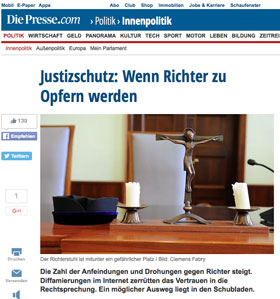 | Richter angezeigt Deutscher Journalist zeigt Salzburger Richter an [Quelle: Kronen Zeitung] ![]() | Häftling gelähmt Häftling nach Gerangel mit Justizbeamten gelähmt [Quelle: Kronen Zeitung] ![]() | Demokratie in Gefahr Demokratie in Gefahr wegen "kranker Justiz" [Quelle: derStandard] ![]() | |||||||||||||||||||||||||||||||||||||||
